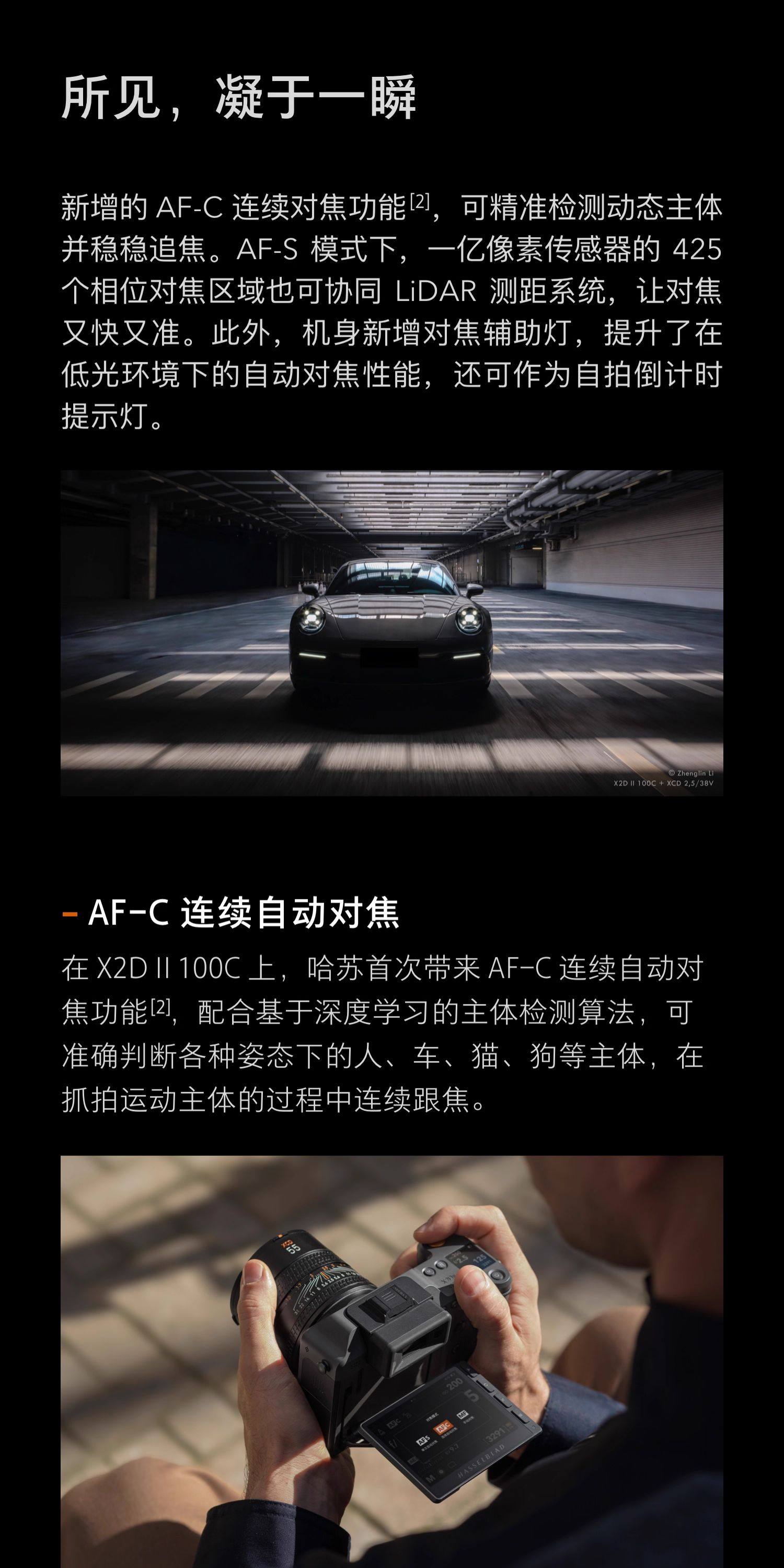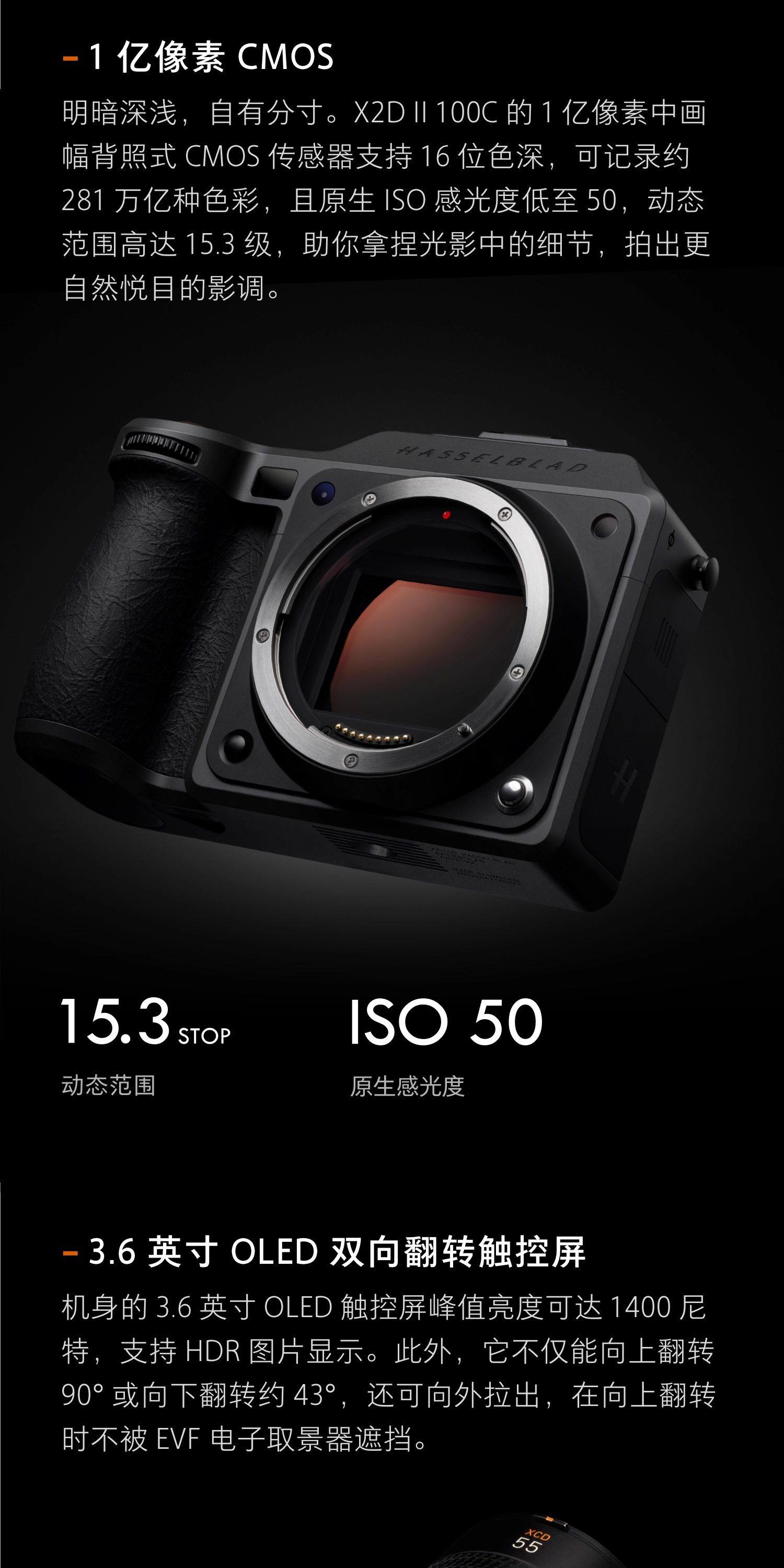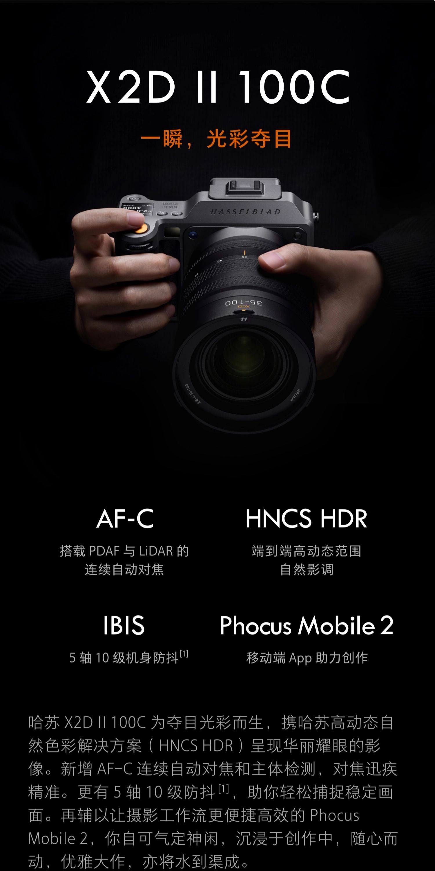 哈蘇 X2D II 100C 為奪目光彩而生,以哈蘇高動態自然色彩解決方案(HNCS HDR)呈現華麗耀眼的影像。新增 AF-C 連續自動對焦和主體偵測,對焦迅疾精準。更有 5 軸 10 級防手震1,幫助你輕鬆捕捉穩定畫面。再輔以讓攝影工作流更便捷高效的 Phocus Mobile 2,你自可氣定神閒,沉浸於創作中,隨心所欲而動,優雅大作,亦將水到渠成。